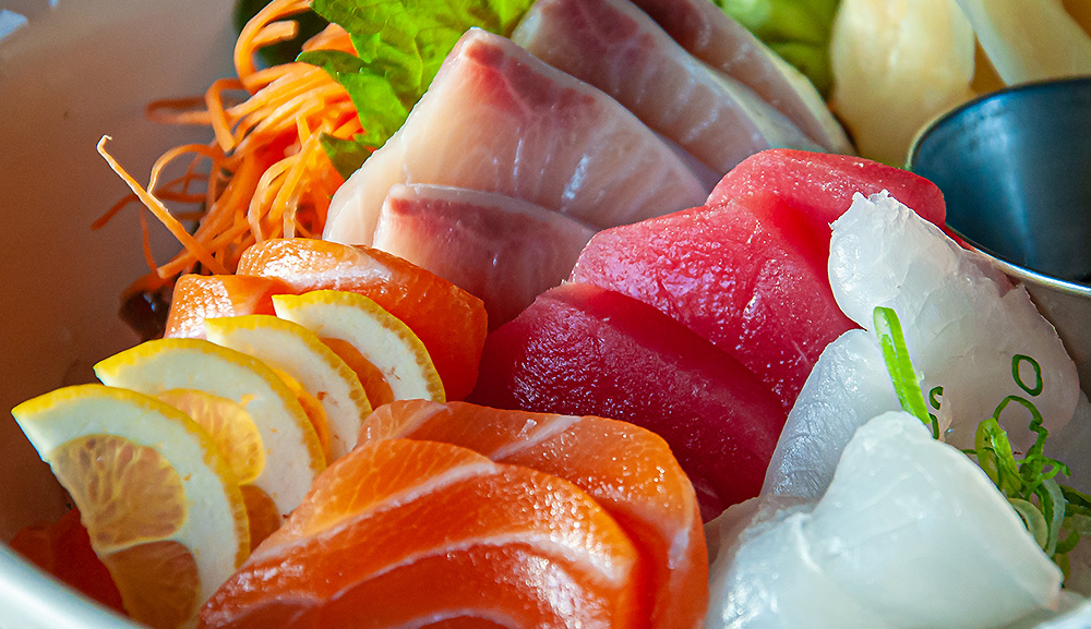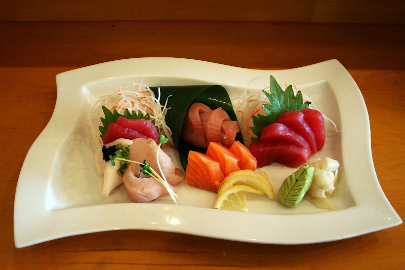 Sashimi is a Japanese delicacy primarily consisting of very fresh raw seafood. Many people believe that sashimi, traditionally considered the finest dish in Japanese cuisine, should be eaten before other strong flavors affect the palate.